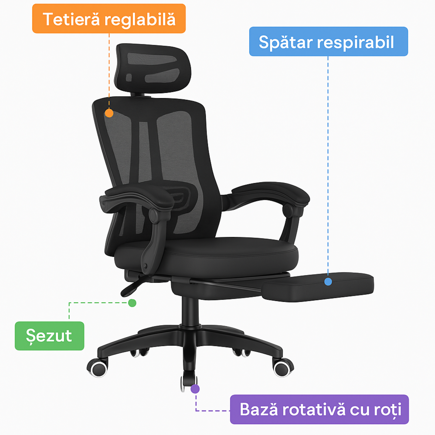Scaun reglabil pentru Birou sau Gaming Ergonomic Negru