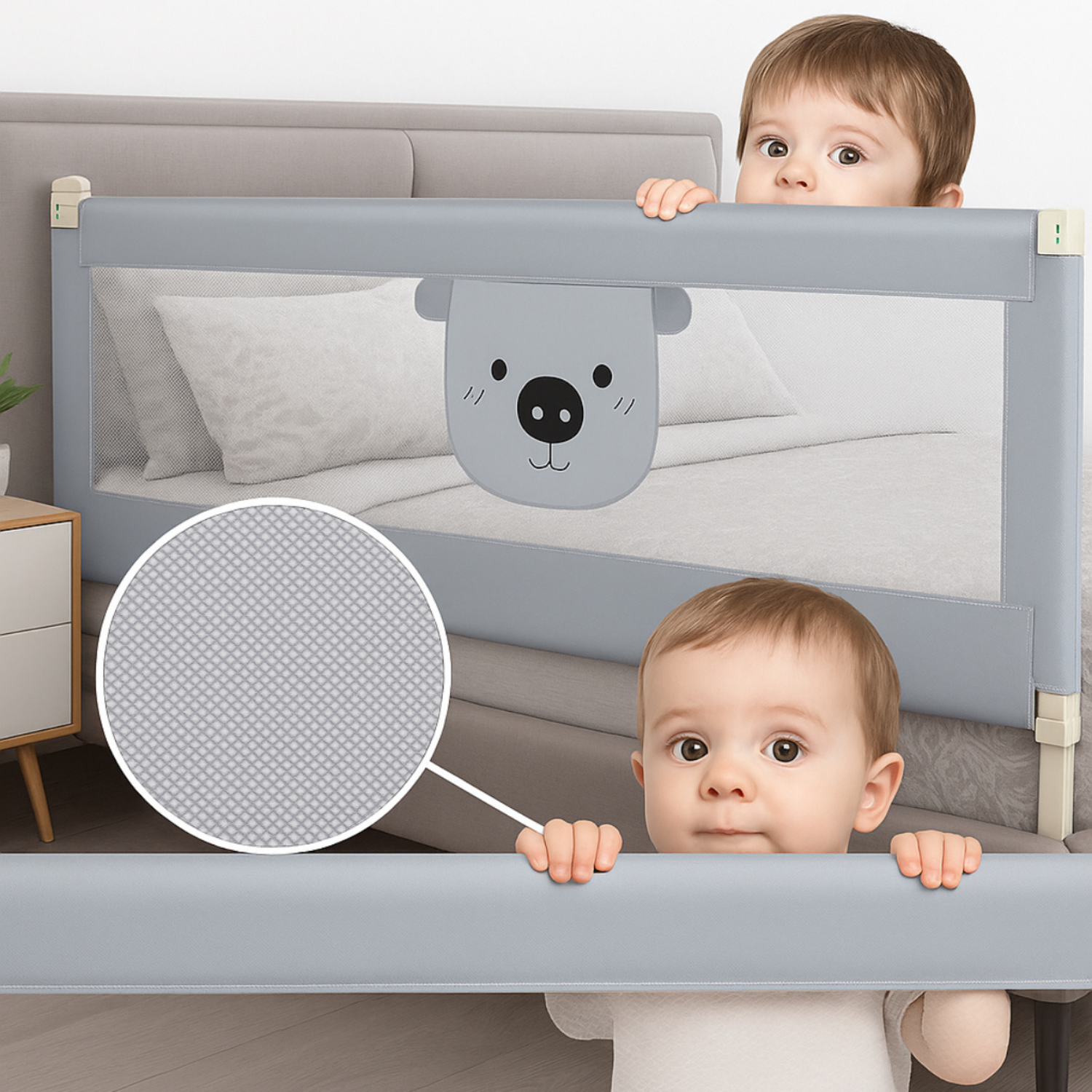 Set 3 Bariere Siguranta Pat Gri 2x200cm + 1x180cm, Înălțime Reglabilă 68-98cm, Protecție pentru Orice Pat,Gri,Conectori Inclusi